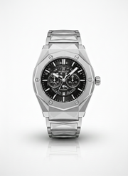 The Nivora Prime™ Chronograph Luxury Watch features a striking deep black dial, multi-function chronograph sub-dials, and a solid stainless steel case & bracelet for a bold, masculine presence.