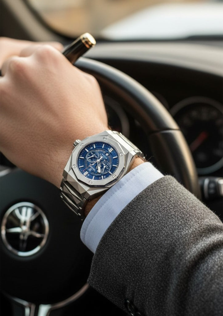 Nivora Prime™ Hublot Chronograph Luxury Stainless Watch – Blue Dial Edition